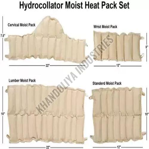 Hydro collator machine is controlled thermostatically to heat water tub made of stainless steel. Hydro collator packs usually made with high-quality jute bags filled with sand, tightly stitched and transformed in the shape to cover respective body part. E.g cervical hot pack covers an area of neck and shoulder and used for neck pain relief or shoulder pain relief. Lumbar pad for back area and used for the heat treatment of back pain, muscle spasm, sciatica, and spondylolisthesis, etc. Similarly smaller pack for the heat treatment of wrist, ankle or knee area for pain relief from arthritis, knee pain, elbow pain, ankle pain, etc Hydro collator packs are neatly wrapped in a towel and used on the respective body part for heat treatment